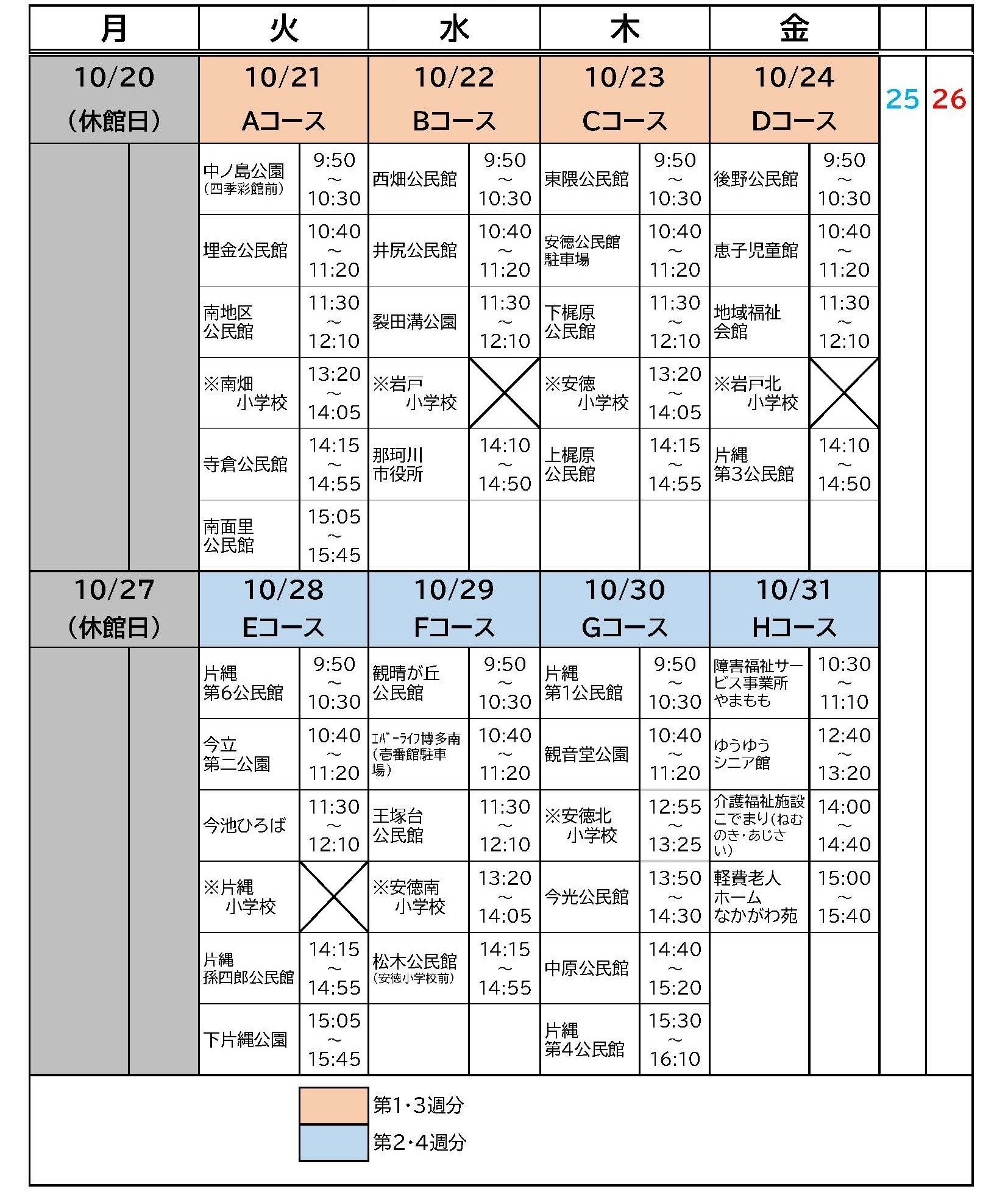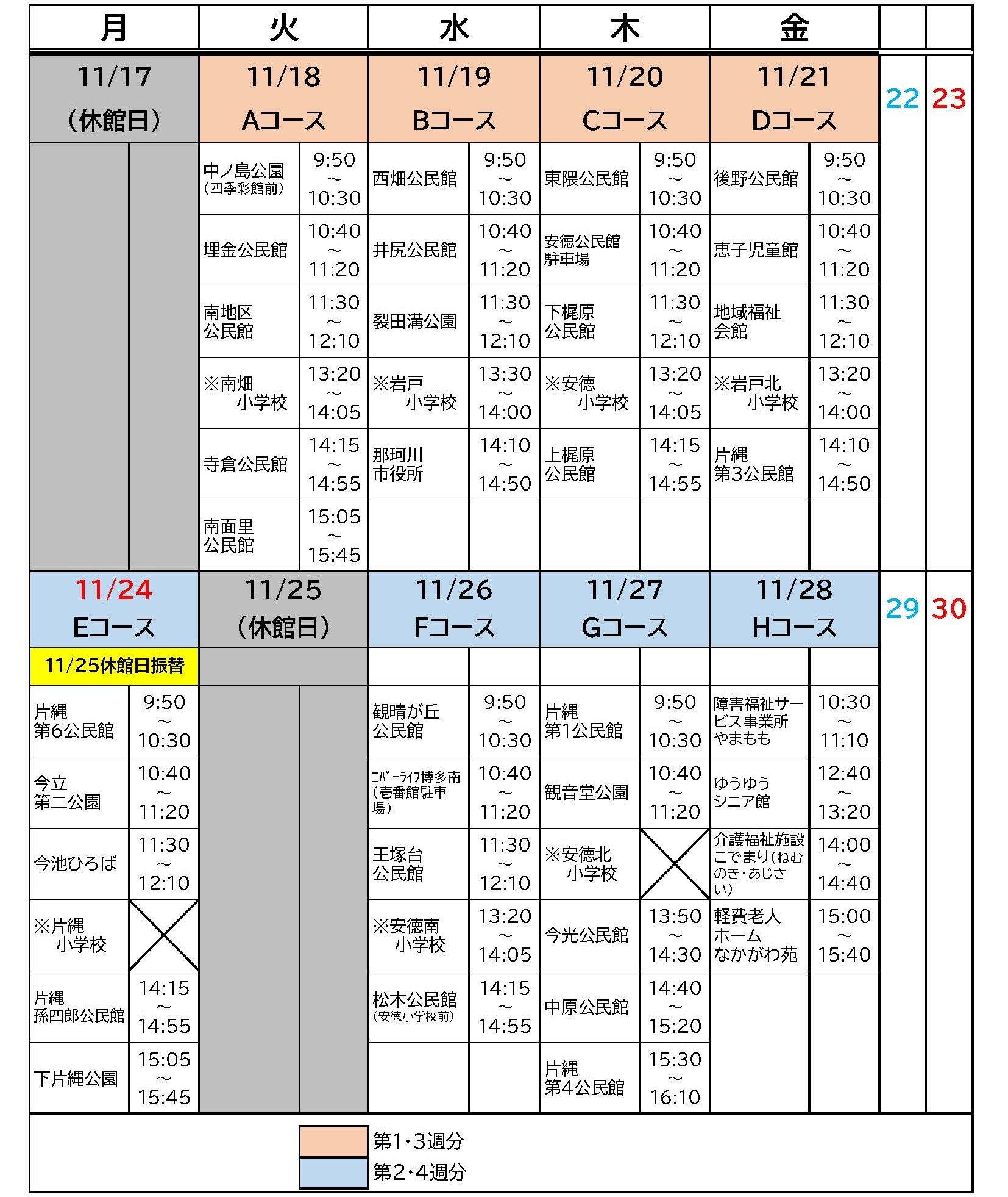 ※小学校巡回時は児童のみ、Hコースは高齢者・福祉施設利用者のみ利用できます。